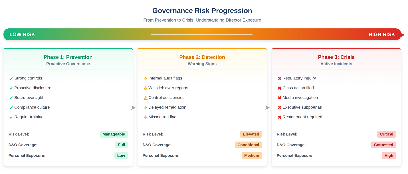 These triggers reflect a fundamental shift. Liability is no longer a question of criminal intent. It is a question of governance readiness. Courts and regulators ask: were systems in place? Did the board receive reports? Did the CEO act? Did the CFO verify? Did the company speak clearly and truthfully? If the answer is no, liability is not just possible. It is probable.