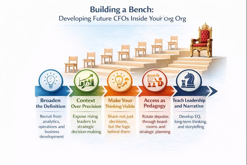 To build a future CFO, you must make your thinking visible. Do not just tell your deputies what decision you made. Walk them through how you made it. Why this structure, not that one? Why equity here and debt there? Why defer this hire but greenlight that tool? The point is not to showcase brilliance. It is to build intuition. Great finance leaders are pattern recognizers. But those patterns only form when someone explains the layers beneath the answer.