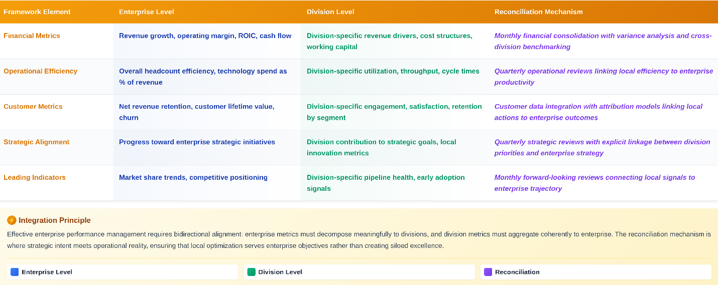 The following framework establishes how performance metrics can maintain coherence across diverse business units: