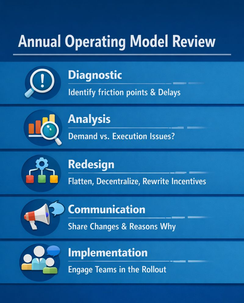 Great companies do not wait for pain. They treat the operating model as a living organism. They build a culture of annual review: every year re-examining how decisions get made, how feedback loops are structured, and how execution is coordinated.