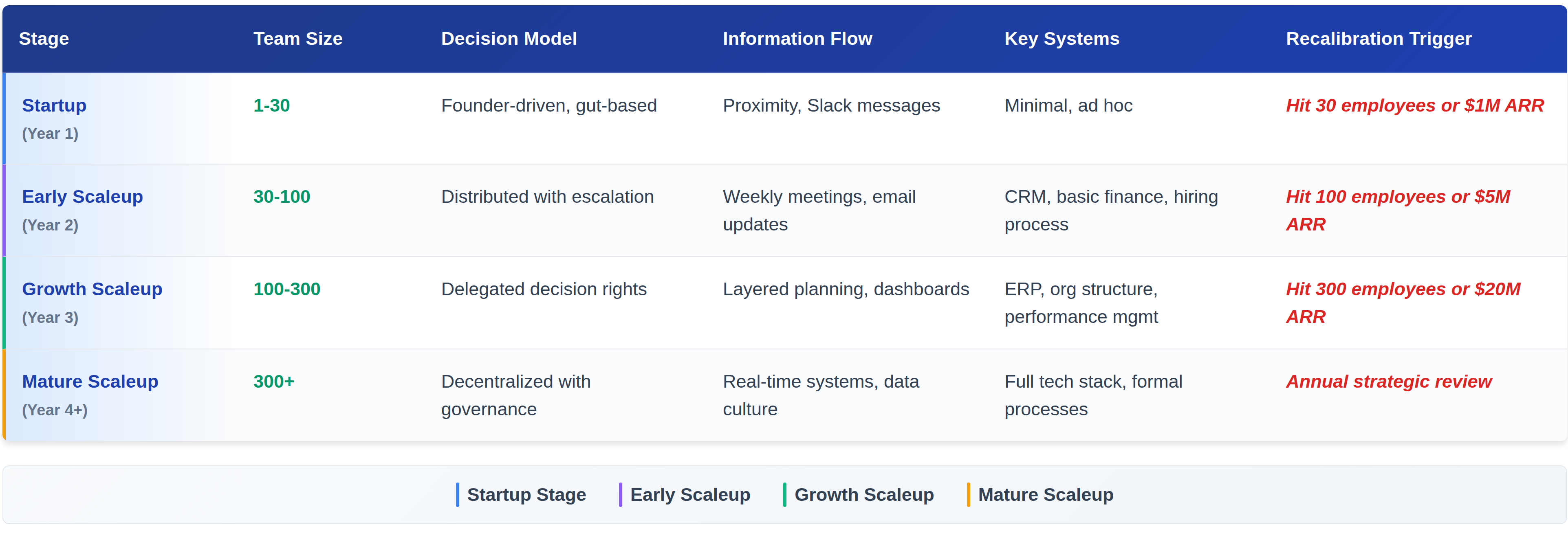 Twelve months. That is the cadence at which most fast-growing companies must revisit their operating model. Not because something is broken but because the business has changed. New customers, new markets, new team members all reshape the logic of execution. What worked for a team of 20 breaks at 50. What worked at 50 implodes at 150.