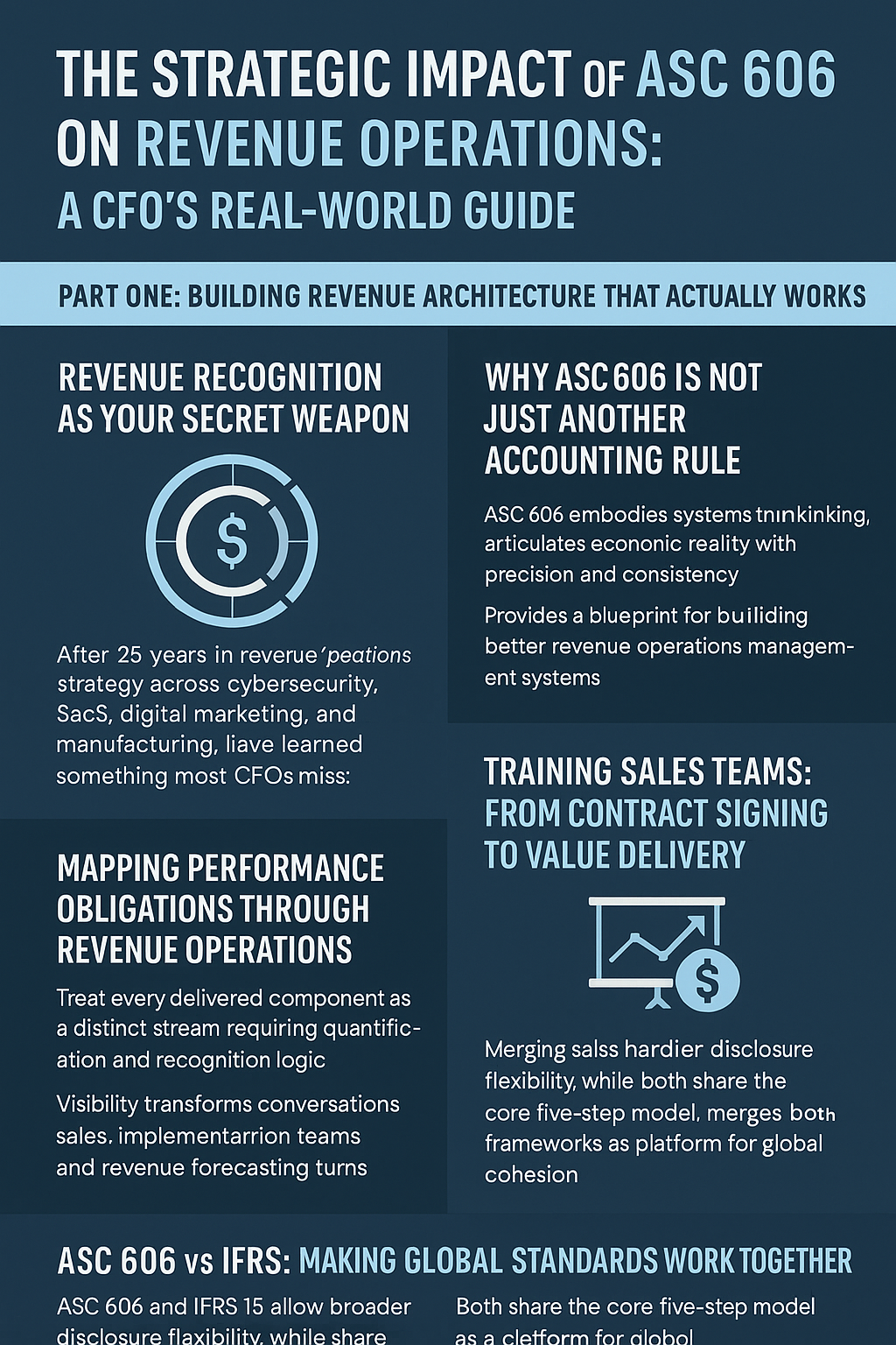 After implementing ASC 606 across multiple companies and industries, from gaming to cybersecurity to digital marketing, I have come to see it not as a burden but as a blueprint. When applied with systems thinking, it elevates your entire revenue operations management architecture.