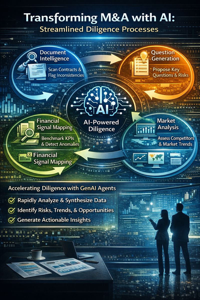 GenAI can now collapse that timeline. The right agent, trained on deal logic and industry context, can scan contracts, flag missing terms, benchmark KPIs, and summarize sector-specific risks before the deal team even meets the target.