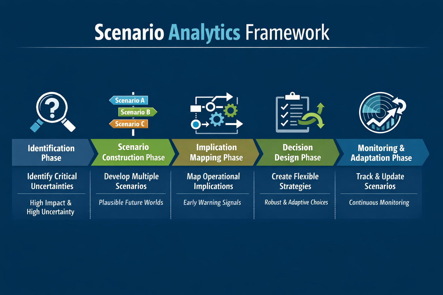 The following framework outlines how scenario analytics transforms strategic planning: